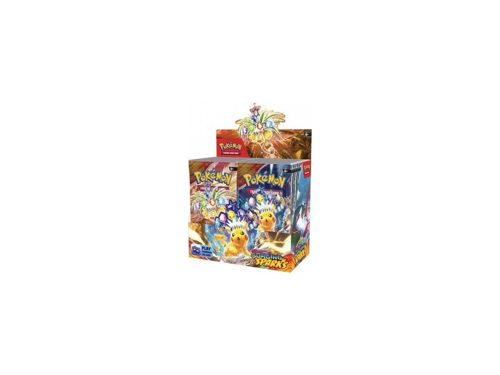Booster box obsahuje 36x booster edice Surging Sparks